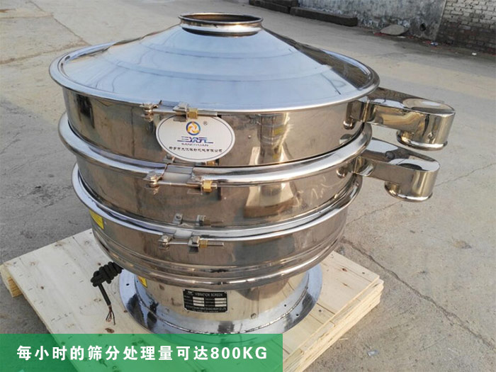 我們公司生產(chǎn)800旋振篩每小時的篩分處理量可達(dá)800KG,滿足了用戶要求的時產(chǎn)500KG以上的要求,大大提高了榨油坊的工作效能,同時大漢800型旋振篩支持安裝2層及以上篩網(wǎng),除了簡單的篩分也可以用來過濾、除雜、分級。