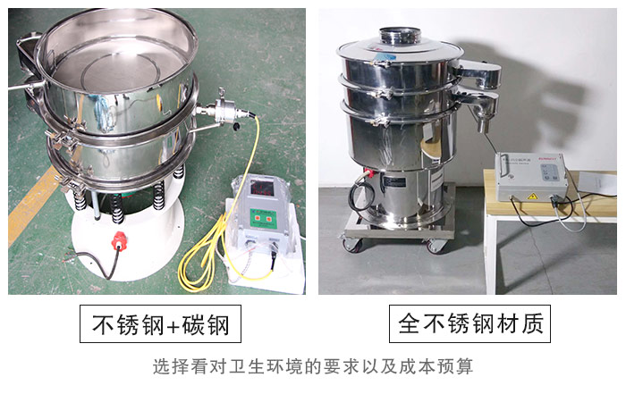 【篩機材質】—— 玉米淀粉作用食品行業(yè)物料,所以推薦您使用不銹鋼材質,而常用的不銹鋼超聲波振動篩分為兩種結構,一種是整機均采用不銹鋼制成,另一種是與物料接觸不分為不銹鋼材質,底座為碳鋼材質,至于如何選擇就看您對衛(wèi)生環(huán)境的要求以及成本預算了。