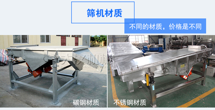 煙草直線振動(dòng)篩主要有碳鋼與不銹鋼兩種,材質(zhì)不同的煙草直線振動(dòng)篩在價(jià)格上也相差幾百到上千元不等。不銹鋼材質(zhì)的直線振動(dòng)篩更適合食品、醫(yī)藥篩分,對(duì)于煙草篩分衛(wèi)生環(huán)境要求較高的企業(yè)也可以使用的不銹鋼直線振動(dòng)篩,對(duì)于衛(wèi)生環(huán)境要求不高的企業(yè)碳鋼材質(zhì)的直線振動(dòng)篩就可以滿足您的要求,價(jià)格上也會(huì)比不銹鋼的便宜不少。