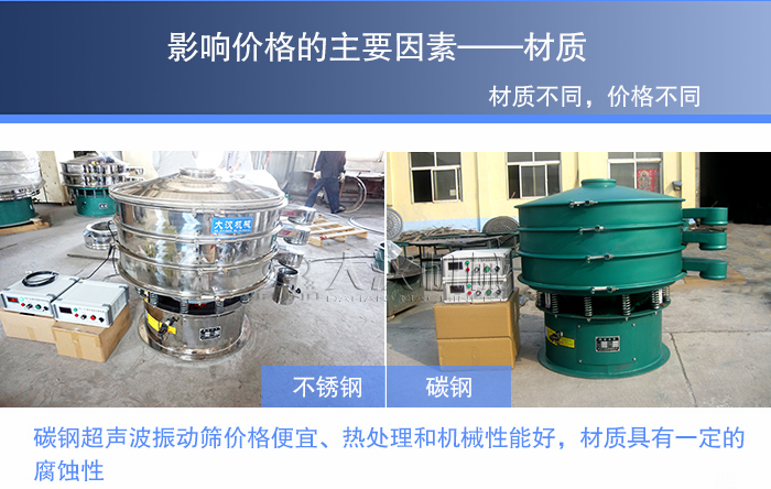 超聲波振動(dòng)篩的材質(zhì)選擇主要是根據(jù)物料,不同的物料特選擇的材質(zhì)就是不同。不銹鋼材質(zhì)比碳鋼材質(zhì)要貴。