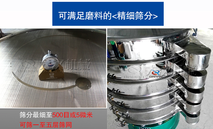 超聲波振動(dòng)篩可滿足顆粒、粉末、粘液一定范圍內(nèi)均可篩選。篩分細(xì)至500目或0.028mm, 過濾小可至5微米。分級篩選,可篩一至五層篩網(wǎng),能同時(shí)進(jìn)行二至六個(gè)等級的分選或過濾。所以對于4目—500目之間的磨料能輕松進(jìn)行精細(xì)篩分。