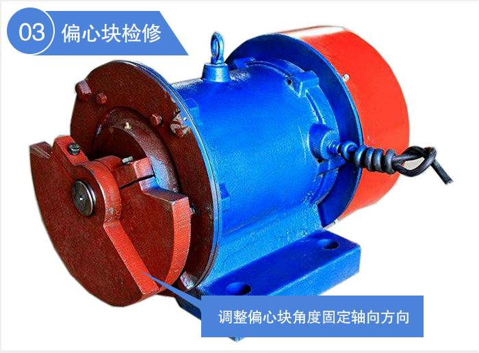 振動電機安裝偏心塊調(diào)整激振力時,需要兩內(nèi)側(cè)為固定偏心塊應(yīng)在軸向方向保持重合,再將兩端軸上的外則可調(diào)偏心塊向同一方向調(diào)整為相同角度,否則電機產(chǎn)生巨大的錯向激振力,以至發(fā)生損壞振動機械的現(xiàn)象。
